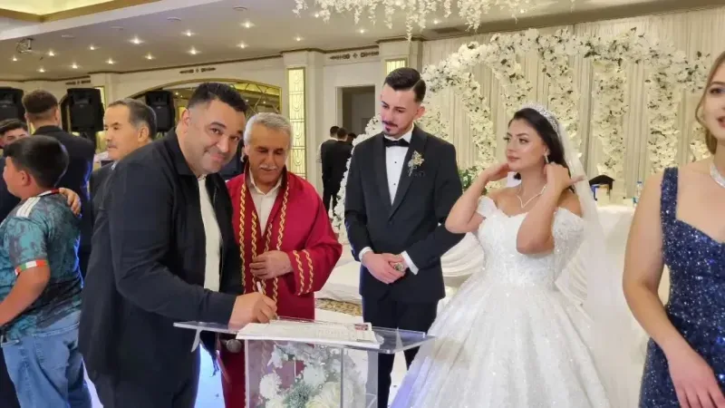 Neriman ve Hasan çifti, nikâh töreninde sevdiklerinin yoğun ilgisiyle mutluluklarını paylaştı. Tüm davetliler, genç çiftin yeni yaşamlarına en güzel dileklerle adım atmalarına eşlik etti.