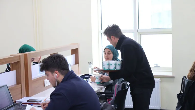 Sınav stresi, uykusuz geceler ve ders yoğunluğu arasında kısa bir nefes alma imkânı sunan çorba ikramı, öğrencilerden büyük ilgi gördü.