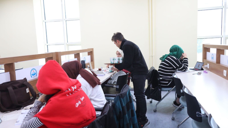 Üniversite kampüsünde kurulan stantta yapılan ikramlar, öğrencilerin hem bedenini hem de moralini ısıttı.
