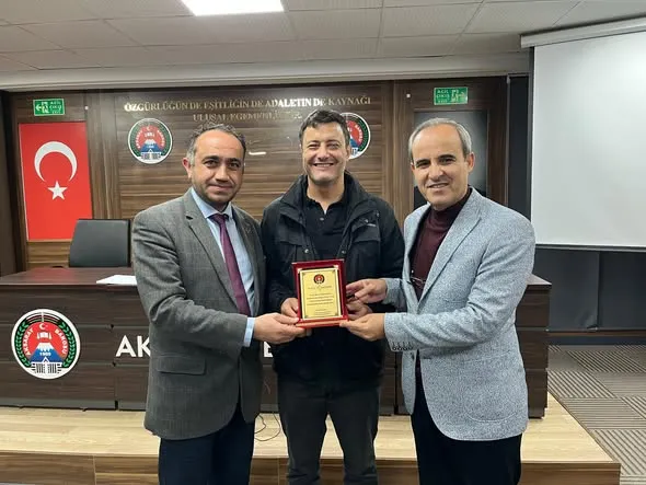 Aksaray Barosu Başkan Vekili Av. Cumali Altınsoy, eğitime katkılarından dolayı Av. Arb. Şamil Demir'e teşekkür ederek plaket takdim etti. Bu jest, eğitimin niteliği ve baronun katkısağlayanlara verdiği önemin bir göstergesi oldu.