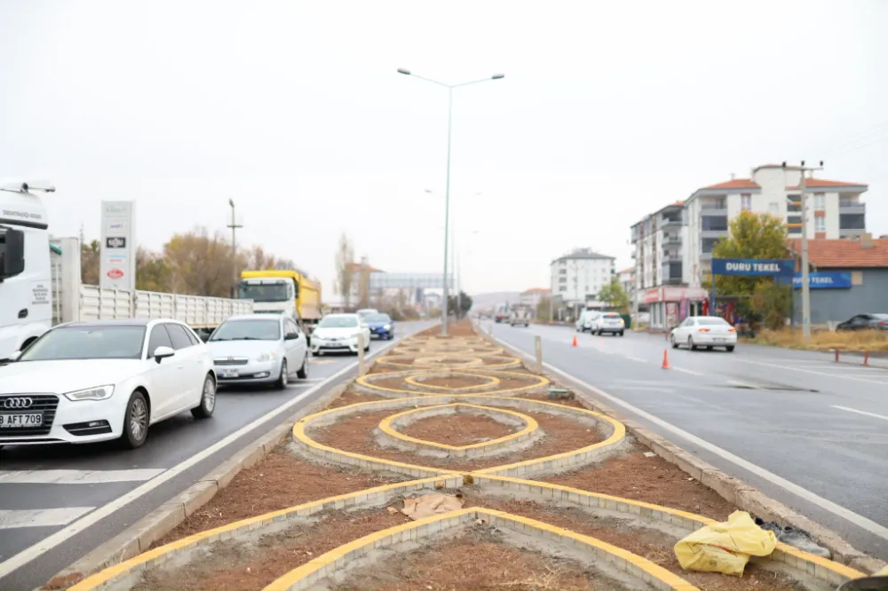 Nevşehir yolu üzerinde yer alan orta refüjlerde başlatılan çalışmalar kapsamında, düşük su ihtiyacına sahip bitkiler ve doğal materyaller kullanılıyor. Bu sayede sulama ihtiyacı minimuma indirilerek bakım maliyetleri düşürülüyor.