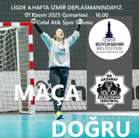Türkiye Kadınlar Hentbol 1. Ligi A Grubu’nda mücadele eden Aksaray Belediyespor, 4. hafta karşılaşmasında İzmir Büyükşehir Belediyespor ile deplasmanda karşılaşacak. Mücadele, 1 Kasım Cumartesi günü saat 16.00’da İzmir’deki Celal Atik Spor Salonu’nda oynanacak.