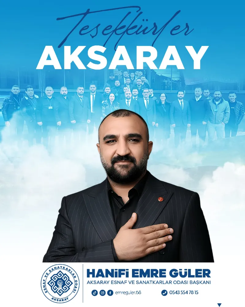 Hanifi Emre Güler, seçim sürecine katkı sunan tüm adaylara, görev alan isimlere ve oy kullanarak iradesini ortaya koyan esnaf ve sanatkârlara teşekkür ederek, “Kazanan bir kişi ya da yönetim değil; Aksaray esnafı olmuştur,” mesajını verdi. Güler, gece gündüz demeden çalışacaklarını ve Aksaray esnafının alın terini koruyacaklarını belirtti.