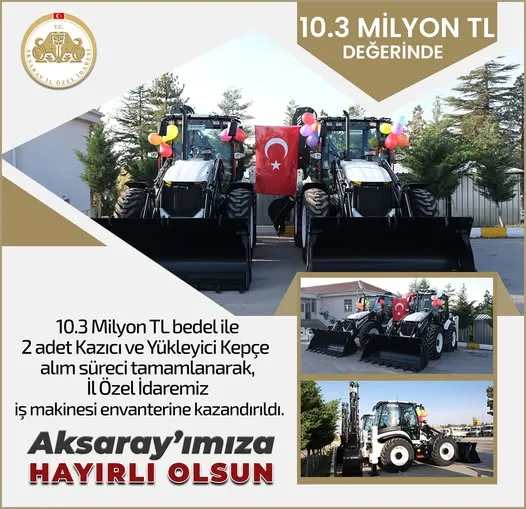 Aksaray İl Özel İdaresi, hizmet kalitesini yükseltmek ve kırsal altyapı projelerine ivme kazandırmak amacıyla araç filosunu güçlendirdi. Özkaynaklar kullanılarak alınan 10.300.000 TL değerindeki 2 adet yerli üretim kazıcı ve yükleyici kepçe, envantere dahil edildi.