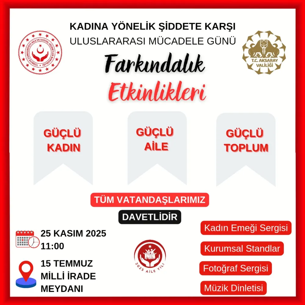 Açıklamada, “Bu önemli mücadelede vereceğiniz destek ve göstereceğiniz katılım bizler için büyük bir değer taşımaktadır. Bu anlamlı günde katılımlarınız bizleri onurlandıracaktır” sözleriyle tüm Aksaray halkı etkinliklere davet edildi. Şiddetle mücadelede herkesin aktif rol almasının önemi vurgulandı.
