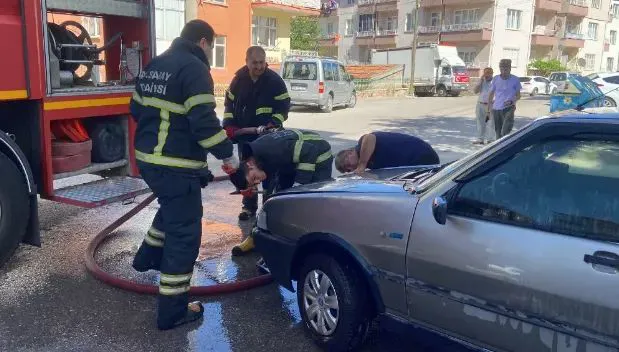 Yangının kontrol altına alınması sırasında aracın sahibi Avni Gökçe, itfaiye ekiplerine yardımcı olmak amacıyla aracın kapılarını ve kaputunu açtı. İtfaiye ekipleri, yangın söndürme işlemi tamamlandıktan sonra detaylı bir inceleme yaptı. Yapılan incelemede, aracın aküsünün patlaması ve ardından şase yapması sonucunda yangının çıktığı tespit edildi.