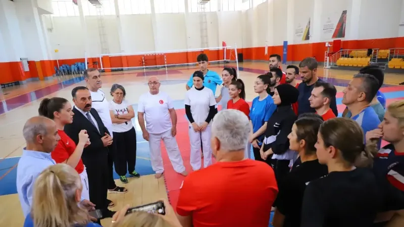 Tokyo Deaflympics hazırlıkları kapsamında Aksaray Paralimpik Oyunlar Hazırlık Merkezi’nde kampa giren Karate Milli Takımı, yoğun tempoda çalışmalarını sürdürüyor. Kampı ziyaret eden İl Müdürü Aslan Yıldız, sporcularla sohbet ederek destek verdi ve başarı dileklerini iletti.
