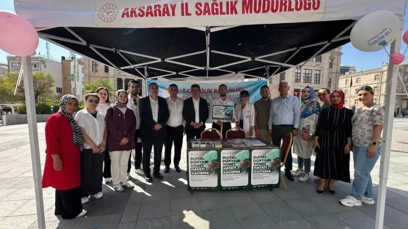 Aksaray Valiliği önünde kurulan bilgilendirme standında, vatandaşlara teknoloji bağımlılığı ve sağlıklı kullanım konusunda bilgiler aktarıldı. Standı ziyaret eden İl Sağlık Müdürü Dr. Abdullah Güleç, dijital dünyayı yönetmenin hayat kalitesi üzerindeki etkisine dikkat çekti.