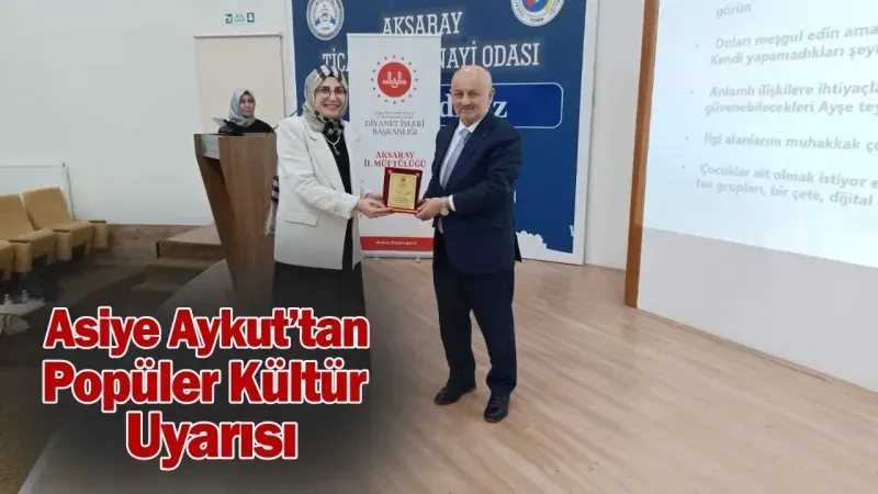Ardından sahneye çıkan Yazar Asiye Aykut, katılımcılara hitap ederek günümüzün gençliğini etkisi altına alan popüler kültür unsurlarına dikkat çekti. Sunumunda çeşitli araştırmalar, belgeler ve görseller kullanarak özellikle çocuklar ve gençler üzerindeki kültürel etkileri değerlendirdi.