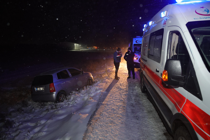 Yoğun kar yağışı altında seyir halinde olan yolcu otobüsü, sürücünün direksiyon hakimiyetini kaybetmesi sonucu şarampole devrildi. Kazanın ardından olay yerine sağlık, jandarma ve itfaiye ekipleri sevk edildi.