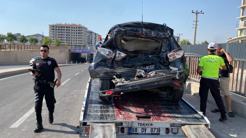 Çarpmanın şiddetiyle otomobilin arka kısmı ciddi şekilde hasar alırken, araç sürücüsü İ.T. ile yanında bulunan eşi Ş.T. (50) yaralandı. Kazayı gören vatandaşların ihbarı üzerine olay yerine sağlık ve polis ekipleri sevk edildi. Yaralı çift, ambulansla Aksaray Eğitim ve Araştırma Hastanesi’ne kaldırılarak tedavi altına alındı.