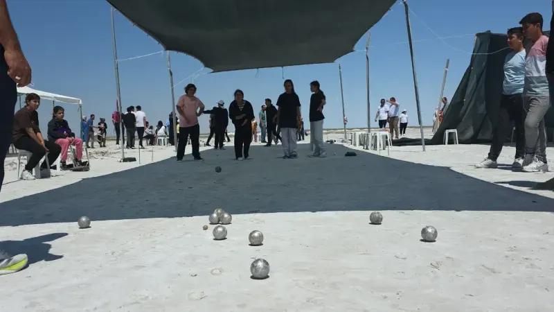 Eskil İlçe Milli Eğitim Müdürlüğü’nün yıl sonu etkinlikleri kapsamında gerçekleştirdiği bocce turnuvasının finali, Tuz Gölü’nde yapıldı. İlçeye bağlı 20 farklı köy okulundan 250 öğrencinin katıldığı organizasyonda, finale kalan takımlar gölün bembeyaz tuz zemininde kıyasıya yarıştı.