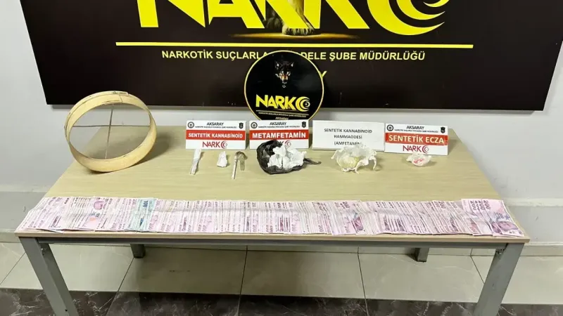 Aksaray Cumhuriyet Başsavcılığı'nın talimatları doğrultusunda, İl Emniyet Müdürlüğü Narkotik Suçlarla Mücadele Şube Müdürlüğü ekipleri tarafından yürütülen çalışmalar sonucu büyük bir uyuşturucu operasyonu gerçekleştirildi. Yapılan aramalarda, 109,02 gram sentetik kannabinoid, 64,21 gram metamfetamin, 46 adet sentetik ecza hap, 1 adet amfetamin emdirilmiş 1600 kullanımlık peçete, 1,87 gram kokain ve 55.850 TL nakit para ele geçirildi.