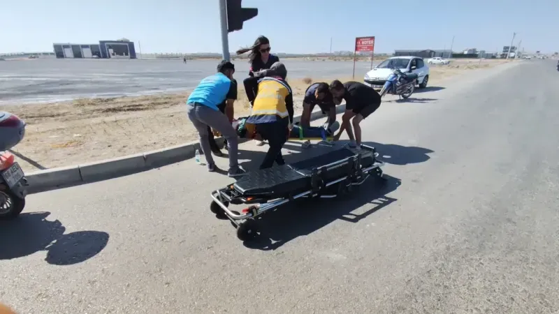 Çarpmanın etkisiyle motosiklet sürücüsü Berat T. yaralandı. İhbar üzerine olay yerine polis ve sağlık ekipleri sevk edildi.
