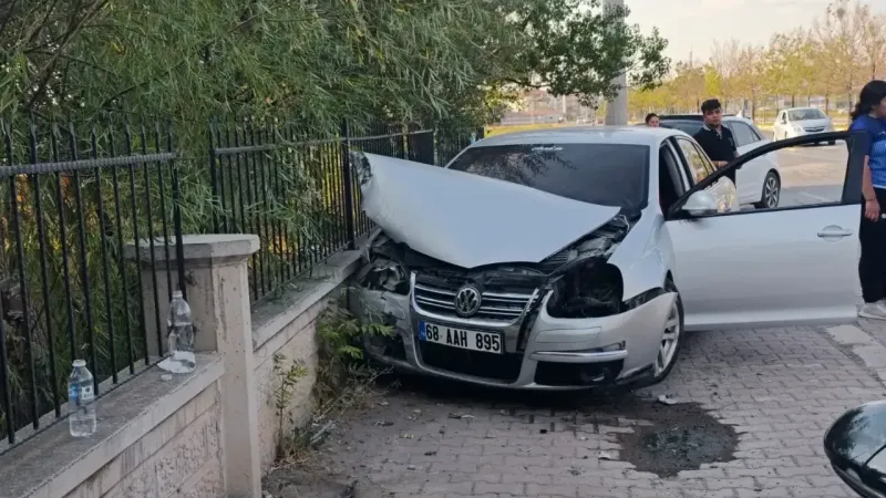 Hürriyet Mahallesi yönüne doğru seyreden 68 AAH 895 plakalı Volkswagen Passat marka otomobil, ön lastiğinin patlamasıyla sürücüsünün kontrolünden çıktı. Araç, Yavuz Sultan Selim İlkokulu’nun bahçe duvarına çarparak durabildi.