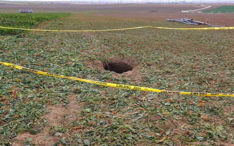 Yaklaşık 2 metre çapında ve 15 metre derinliğinde olduğu belirlenen obruk, tarlada pancar hasadı yapan çiftçi tarafından fark edildi. Durumun tespit edilmesi üzerine mahalle muhtarı derhal jandarma ekiplerine bilgi verdi.