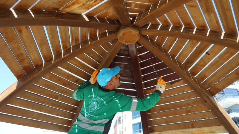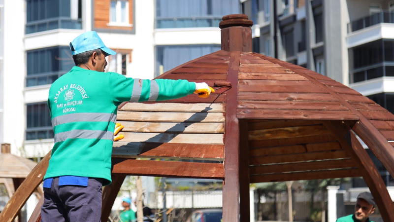 Park içerisindeki ahşap oturma grupları elden geçirilirken, zemin düzenlemesi ve çevre temizliği de aynı anda yürütülüyor. Böylece hem estetik hem de fonksiyonel bir yenilik sağlanıyor.