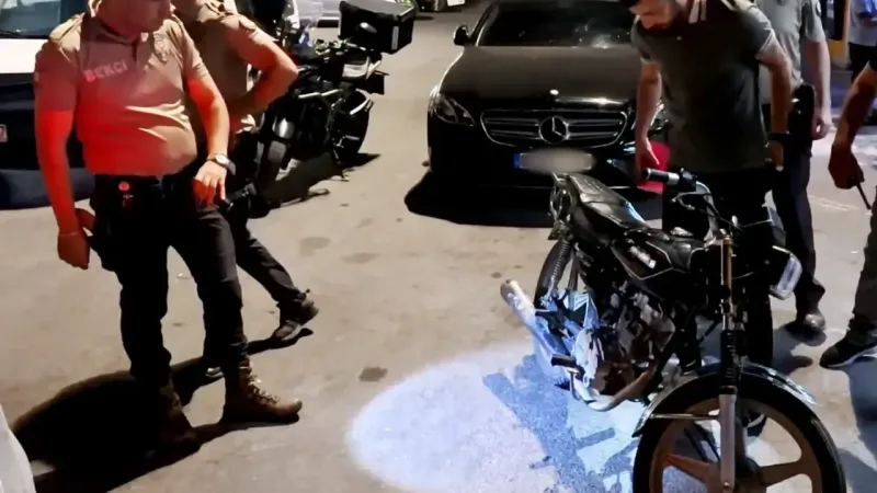 Olay, Aksaray'da gece devriyesi atan bekçilerin bir tesiste plakasız motosiklet fark etmesiyle başladı. Durdurulan motosikletin sürücüsü 17 yaşındaki M.C.D.'nin ehliyet ve ruhsat kontrolleri yapılırken, aracın şase numarasının da silinmiş olduğu tespit edildi.