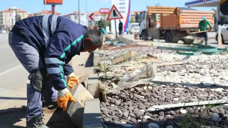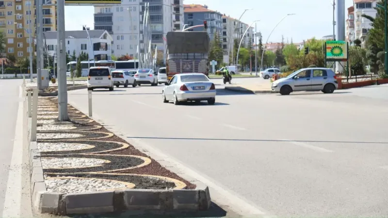 Belediye ekipleri tarafından yürütülen çalışmalarda, refüj alanlarına dekoratif taş uygulamaları yapıldı. Bu yenilikçi düzenleme, sürücülerin dikkatini artırarak trafik güvenliğini sağlamanın yanı sıra görsel açıdan da bulvara yeni bir kimlik kazandırıyor.