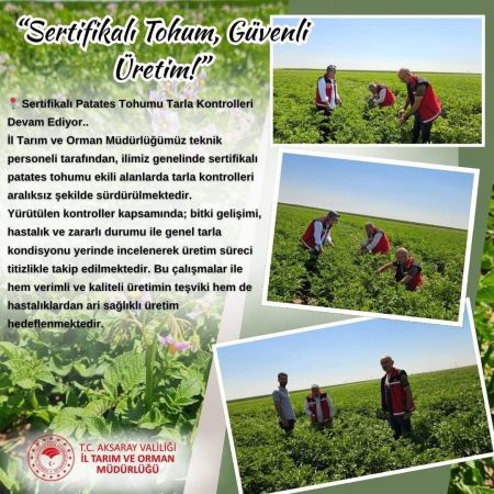 Aksaray İl Tarım ve Orman Müdürlüğü teknik personeli tarafından yürütülen sertifikalı patates tohumu tarla kontrolleri, il genelinde yoğun şekilde devam ediyor. Ekipler, üretim sürecinin her aşamasını yerinde denetleyerek olası hastalık ve zararlı risklerine karşı önlemler alıyor.