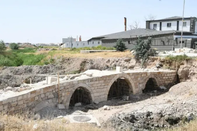 Yıllarca bakım eksikliği nedeniyle toprağa gömülü kalan bu tarihi eser, yeniden restore edilerek eski ihtişamına kavuşturuluyor. Belediye Başkanı Evren Dinçer, uzun süredir bakımsızlık nedeniyle toprak altında kalmış olan Osmanlı Dönemi'ne ait Karasu Köprüsü'nün restorasyon çalışmalarının sona yaklaştığını duyurdu. Başkan Dinçer, “Yok olmaya yüz tutmuş bir eseri daha gün yüzüne çıkardık. Bu restorasyon çalışmasıyla hem kültür hazinemize hem de şehrimize önemli bir değer kazandırıyoruz,” dedi. Karasu Köprüsü, yıllar içinde ilgisizlik nedeniyle büyük oranda toprak altında kalmıştı. Yapılan titiz çalışmalar sayesinde köprü, eski ihtişamına kavuşuyor. Başkan Dinçer, restorasyonun tamamlanmasının ardından köprünün, hem yerel halk hem de ziyaretçiler için önemli bir tarihi ve turistik cazibe merkezi olacağını belirtti. Bu proje, Aksaray'ın kültürel mirasına sahip çıkma ve tarihine saygı gösterme anlayışının bir göstergesi olarak öne çıkıyor. Dinçer, “Tarihi eserlerimize sahip çıkmak, geçmişimizle bağ kurmak ve gelecek nesillere miras bırakmak açısından büyük önem taşıyor,” ifadelerini kullandı. Restorasyon çalışmalarının yakın zamanda tamamlanması bekleniyor ve köprü, resmi bir törenle yeniden açılacak. Aksaray Belediyesi, bu tür projelerle şehrin tarihi zenginliklerini korumaya ve tanıtmaya devam edeceğini vurguladı.