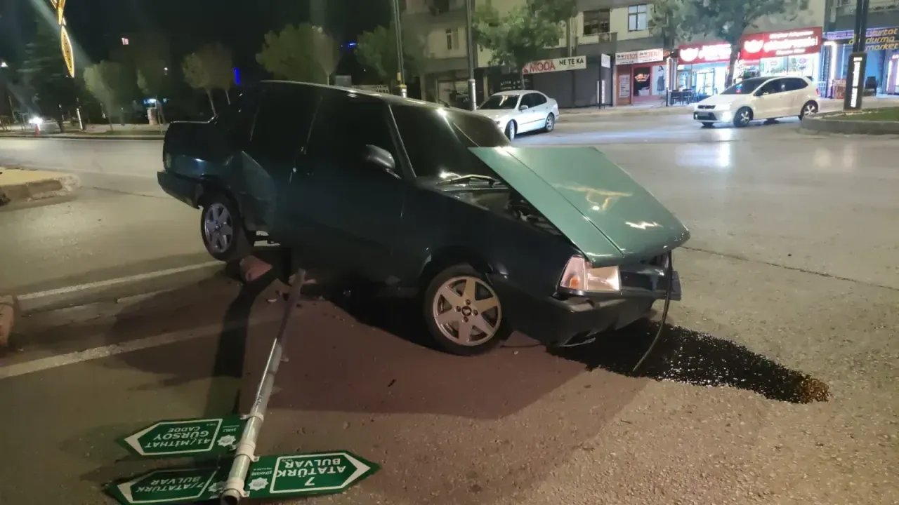 Kaza, Şamlı Mahallesi Atatürk Bulvarı üzerinde gerçekleşti. Şehir merkezi istikametine ilerleyen 06 HE 2426 plakalı Tofaş marka otomobil, sürücüsünün kontrolünü kaybetmesiyle kaldırıma çarptı. Çarpmanın etkisiyle yol ortasındaki tabelayı deviren araç, orta refüje girerek durabildi.