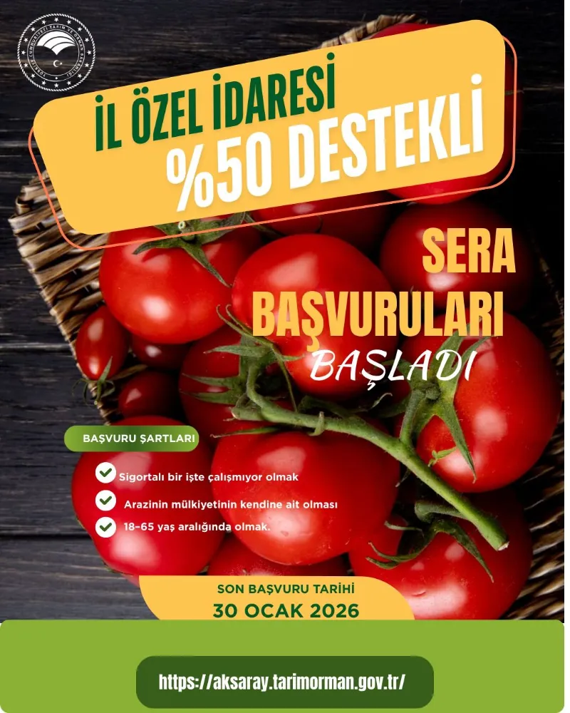 Aksaray İl Tarım ve Orman Müdürlüğü, İl Özel İdaresi iş birliğiyle %50 hibeli sera desteği başvurularının başladığını duyurdu. Tarımsal üretimi artırmaya yönelik başlatılan proje, üreticilere büyük avantajlar sunuyor.