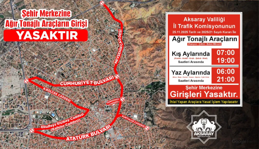 Aksaray Belediye Başkanı Dr. Evren Dinçer, bu düzenlemenin şehir içi trafik güvenliğini sağlamak, yol altyapısının ömrünü korumak ve vatandaşların can güvenliğini artırmak amacıyla uygulandığını ifade etti. Başkan Dinçer, tüm sürücüleri kurallara uymaya davet etti.