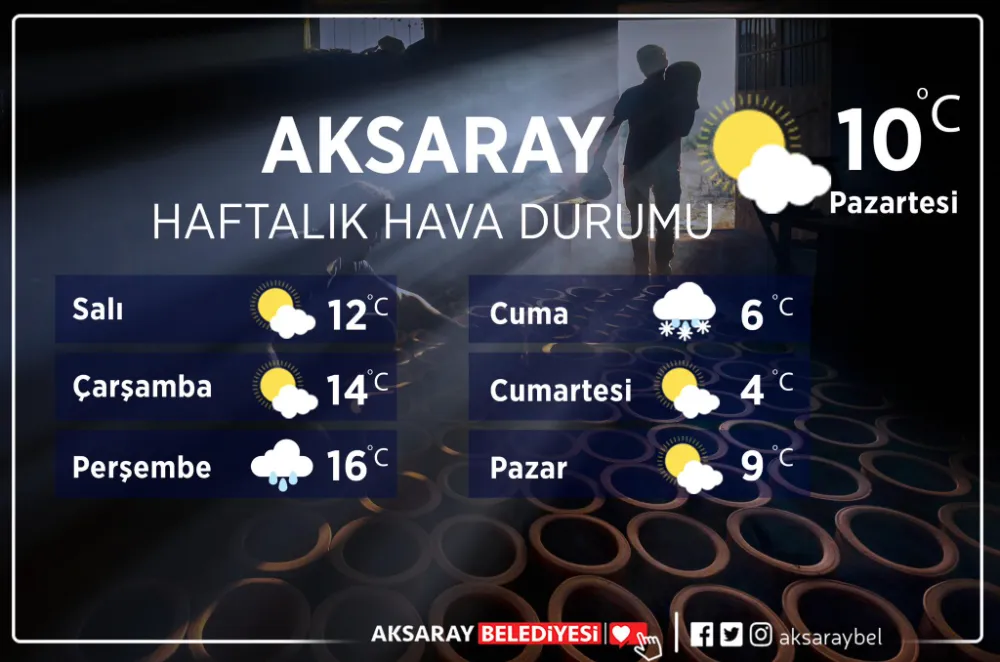 Hafta boyunca Aksaray’da hava sıcaklıkları ciddi dalgalanma gösterecek. Bu nedenle vatandaşların günlük hava durumunu takip ederek kıyafet tercihlerini dikkatli yapmaları öneriliyor. Özellikle hafta sonu soğuk ve yağışlı hava koşullarına karşı tedbirli olunmalı.