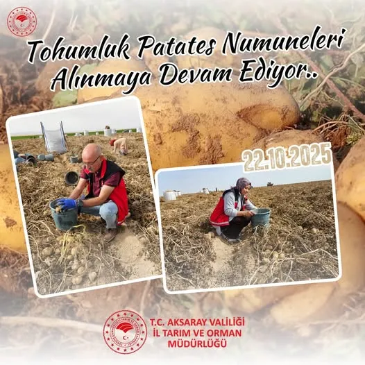 Aksaray İl Tarım ve Orman Müdürlüğü, sertifikalı tohumluk patates üretimini desteklemek adına N 6 çeşit numuneleri almaya devam ediyor. Kaliteli tarım için denetimler aralıksız sürüyor.