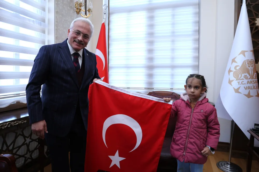 Türkiye’nin dört bir yanında milli duygulara hitap eden duruşuyla tanınan Aksaraylı “Bayrak Kız” Zeynep Ebrar Berk, Aksaray Valiliği tarafından misafir edildi. Küçük yaşına rağmen gösterdiği vatan sevgisiyle gönülleri fetheden Zeynep Ebrar, ziyaret sırasında duygusal anlar yaşattı.