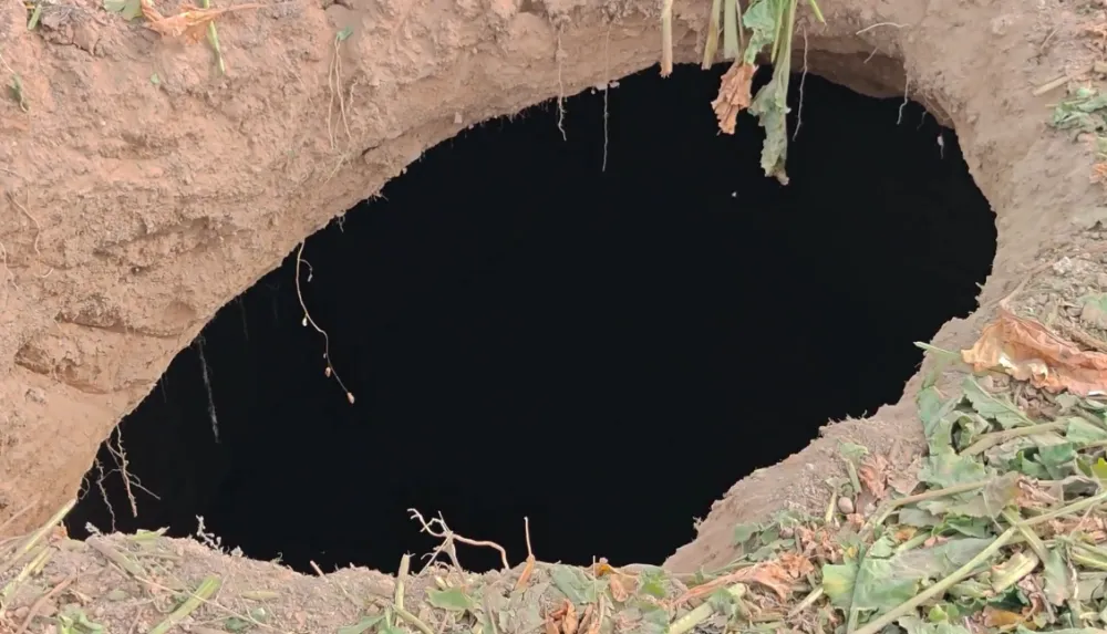 Aksaray’ın Sultanhanı ilçesine bağlı Gazi Mahallesi’nde bir pancar tarlasında yeni bir obruk meydana geldi. Mevlüt Ağır’a ait tarlada hasat yapan çiftçi tarafından fark edilen obruk, bölgede yaşayanları tedirgin etti. Oluşan çöküntünün yaklaşık 2 metre çapında ve 15 metre derinliğinde olduğu belirlendi.