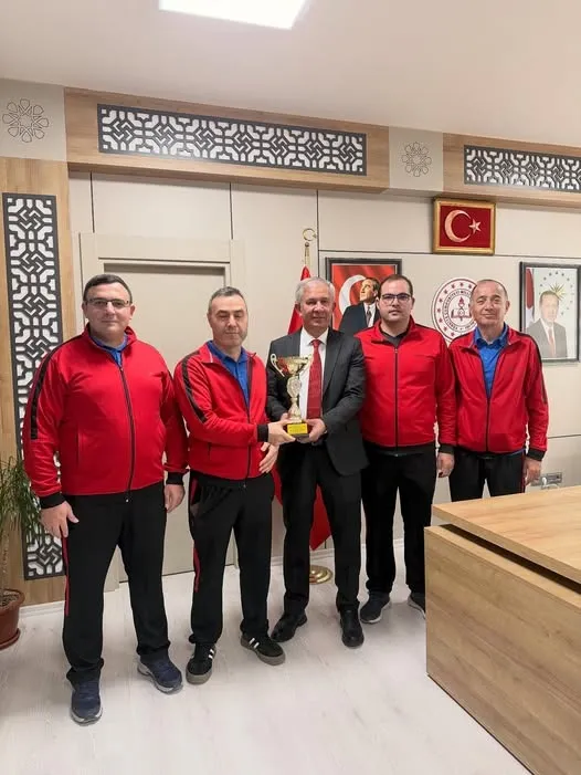 İç Anadolu Bölge Şampiyonu olan Aksaray Erkek Masa Tenisi Takımı, kazandıkları anlamlı başarı sonrası Aksaray İl Millî Eğitim Müdürü Metin Alpaslan’ı makamında ziyaret etti. Ziyarette sporcular, kazandıkları kupayı Müdür Alpaslan’a takdim ederek desteklerinden dolayı teşekkür etti.