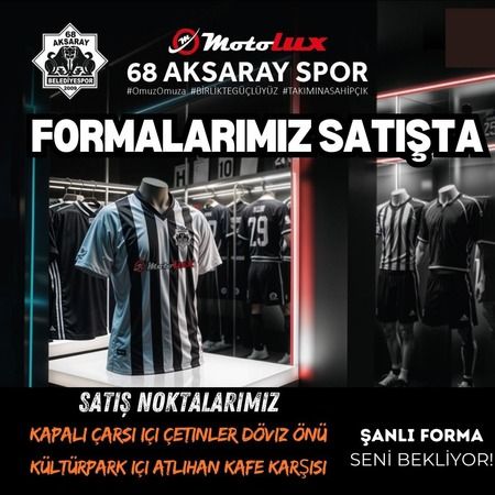 Siyah beyazlı ekip bu sezon, ligde önemli bir başarı elde edebilmek için çalışmalara devam ederken, öte yandan yeni sezon formaları da satışa çıktı. Motolux 68 Aksaray Belediyespor’un yeni formaları, Kapalı Çarşı içi Çetinler Döviz önünde ve Kültürpark içi Atlıhan Kafe karşısında satılıyor. Yeni sezon formaları 500 liradan, takım atkısı 200 lira ve bayrak da 100 lira karşılığında satışa çıkarıldı.