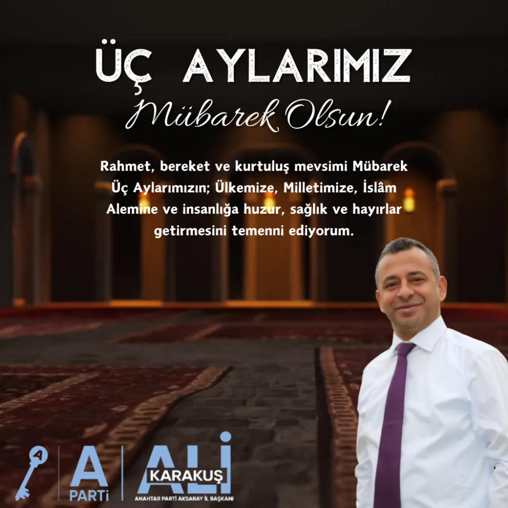 Parti olarak manevi değerlere saygılı bir duruşla çalışmalarını sürdürdüklerini aktaran Karakuş, mesajının sonunda vatandaşların Üç Aylarını bir kez daha kutlayarak, bu dönemin başta Aksaray olmak üzere tüm yurtta barış ve esenlik içinde geçmesini diledi.