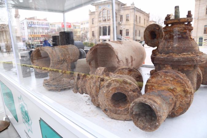 başlatılan alt yapı seferberliğinde değiştirilen asbest içme suyu boruları şehrin birçok noktasında sergileniyor.