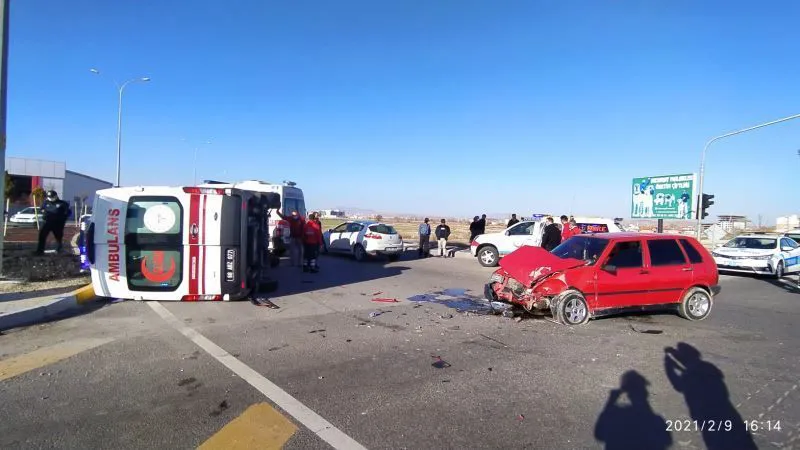 Aksaray’da meydana gelen olayda ambulansla aracın çarpışması sonucu 5 kişi yaralandı.