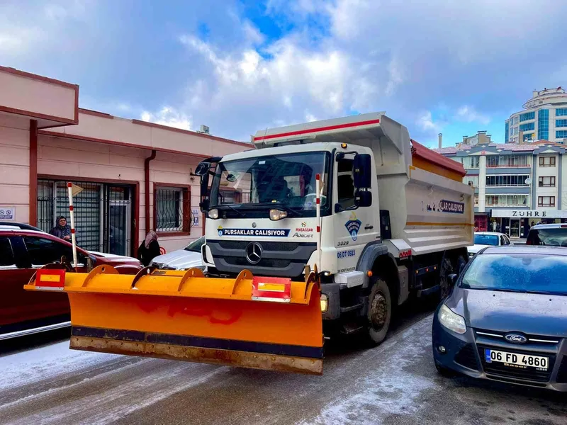 Ankara Pursaklar Belediyesi, etkili olan yoğun kar yağışıyla ilçe genelinde ulaşımın aksamaması ve vatandaşların günlük yaşamlarının olumsuz etkilenmemesi için mesaiye devam ediyor.