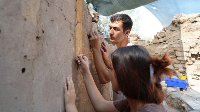 Prof. Dr. Polat, mekanda iki farklı döneme ait fresklerin bulunduğunu aktardı. İlk fresk MS 300 yılına tarihlenirken, fonksiyon değişiminden sonra yani 5. yüzyıl ortalarında duvarlar bitkisel ve panel bezemelerle süslendi. Ancak bu bezemelerin yoğun kireç tabakasıyla kaplandığı, ekiplerin ise bu tabakayı temizleyerek asıl motifleri ortaya çıkarmaya çalıştığı belirtildi.