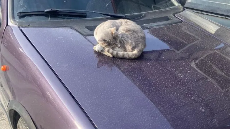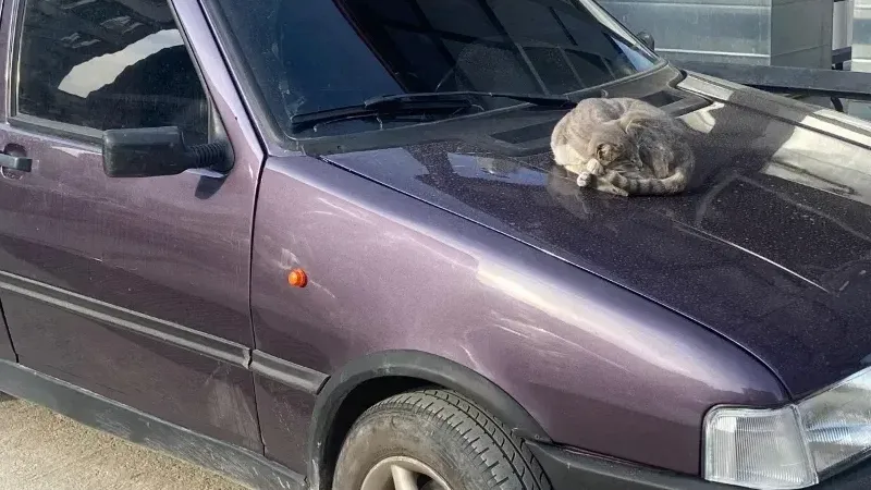 Sevimli kareler Azmi Milli Otoparkında yansıdı objektiflere. Kış mevsiminin gelmesiyle biraz da olsa üşümeye başlayan kediler kendilerine sıcak bir ortam arayışına girerken, kimisi birileri tarafından sahipleniliyor, kimisi kış günü çalışan araçların motor kısmında kendini ısıtmaya çalışırken kimisi de maalesef soğukta yaşayabilme çabasıyla direniyor. Kış mevsiminin gelmesiyle duyarlı vatandaşların da kapı önleri gibi birçok yere mama ve su bırakması sevimli hayvanlar için büyük bir nimet oluyor. Yeni park edilmiş ve dolasıyla motoru sıcak olan aracın kaputunda uyuya kalan bu sevimli kedi hem yürekleri ısıttı hem de bir sonraki gün kedinin ne yapacağı birçok hayvan severin içine üzüntü saldı. Hem güneyin verdiği sıcaklık hem de araç motor kaputunun verdiği sıcaklıkla kendinden geçen sevimli kedi uzun süre kaput üzerinde sıcak bir uyku çekti. Kıvrılarak araç üzerinde uyuyan kedi tüm görenleri gülümsetti.