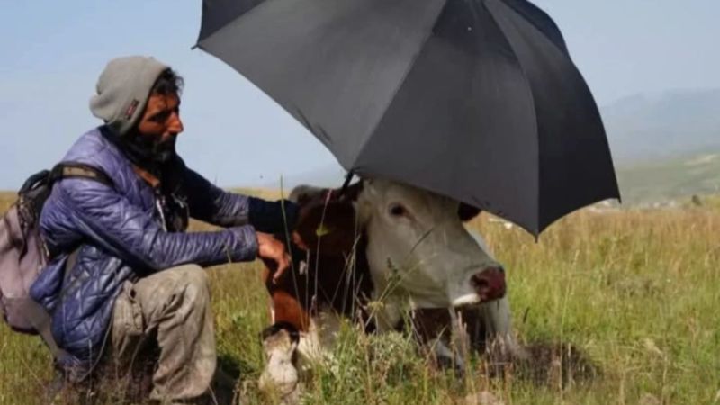 Üreticiler, merada hayvanlarını güneşten korumak için şemsiye kullanıyor.