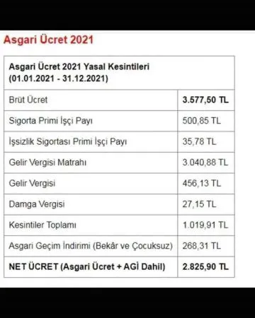 Aile, Çalışma ve Sosyal Hizmetler Bakanı Zehra Zümrüt Selçuk, 2021 yılı için asgari ücretin brüt 3 bin 577 lira 50 kuruş , net 2 bin 825 lira 90 kuruş olduğunu açıkladı.