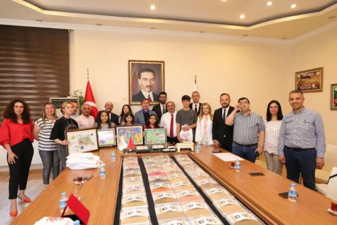 yarışmada dereceye giren öğrencilerle Vali Hamza Aydoğdu’yu ziyaret etti.