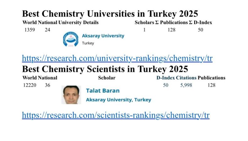 Aynı sıralamada, ASÜ Fen-Edebiyat Fakültesi Dekanı ve Kimya Bölümü Öğretim Üyesi Prof. Dr. Talat Baran da “En İyi Kimya Bilim İnsanları” listesinde yer alma başarısı gösterdi. Bu bireysel başarı da ASÜ'nün bilimsel alandaki iddiasını pekisti.