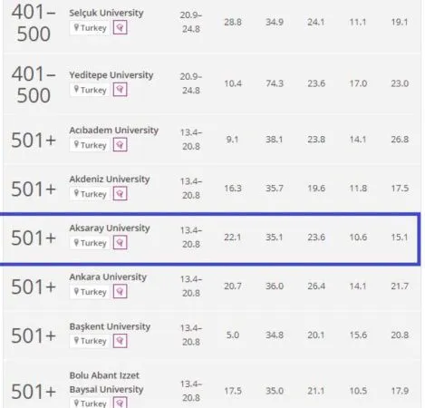 ile paylaştı. Açıklanan listede Aksaray Üniversitesi (ASÜ) 501+ bandında yer aldı.
