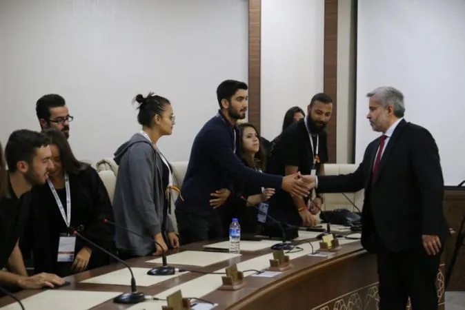 ASÜ’nün uluslararası öğrencilerin de evi olduğunu ve bu hususu titizlikle ele aldıklarını kaydeden Rektör Şahin, yeni eğitim-öğretim dönemine dair gerçekleşen rakamlar hakkında bilgiler verdi. Bu yıl ülke çeşitliliğinin 57’ye, toplam uluslararası öğrenci sayısının da bin 713’e yükseldiğini dile getiren Şahin, “Toplam öğrenci sayımız içinde uluslararası öğrencilerin oranı yüzde 9’a ulaştı. Bu oran ülke genelinde yüzde 3’ler seviyesinde. Yani ülke ortalamasının üzerinde bir başarıya sahibiz. Hedefimiz, oranı kısa vadede yüzde 10 seviyelerine çıkarmaktı ve bu hedefe doğru emin adımlarla ilerliyoruz” dedi. Uluslararası öğrenci konusunu hem kaynakları etkin kullanma hem evrensel şehir manasına gelen üniversitenin potansiyeline katkı sunma hem de Türkiye’nin kadim medeniyet tasavvuru ile örtüşen işler yapma bakımından değerli gördüklerini dile getiren Prof. Şahin, “Dengeli ve kontrollü bir büyüme stratejisi izliyoruz. Gerek akademik gerekse fiziki bakımdan imkânlarımızı, uluslararası öğrencileri de düşünerek kurguluyoruz” dedi. ASÜ’deAmerika’dan Mali’ye, Tunus’tan Sri Lanka’ya, Zambia’dan Yemen’e toplam 57 ülkeden öğrenci var. En fazla öğrencisi olan üç ülke ise sırasıyla Türkmenistan, Suriye ve Azerbaycan.HABER/FOTO: ASÜ Basın