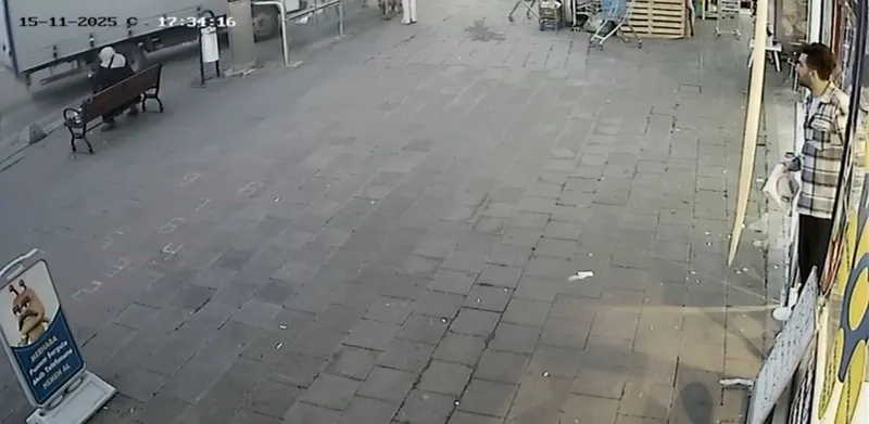 Olay anı bir iş yerinin güvenlik kamerasına yansıdı. Görüntülerde kamyonun geri kayarak hafif ticari araca çarptığı, ardından yavaş şekilde ilerleyerek durağa daldığı net bir şekilde görülüyor.