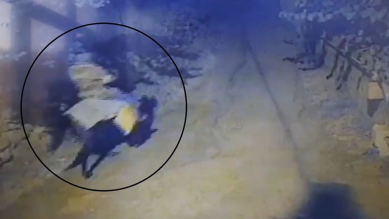 Yaşlı çifti evlerinin önünde öldüren zanlının, olayın ardından at üzerinde olay yerinden uzaklaştığı anlar güvenlik kamerası görüntülerine yansıdı.