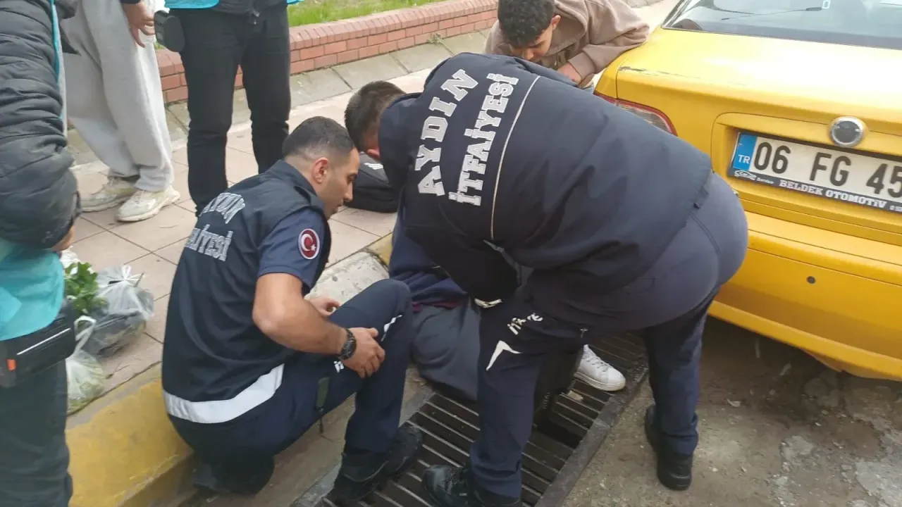 İhbar üzerine bölgeye Aydın Büyükşehir Belediyesi İtfaiye Daire Başkanlığı ve sağlık ekipleri sevk edildi. Kısa sürede olay yerine ulaşan itfaiye ekipleri, titiz bir çalışma ile şahsın ayağını mazgaldan çıkardı. Olay sırasında herhangi bir yaralanma yaşanmadı.