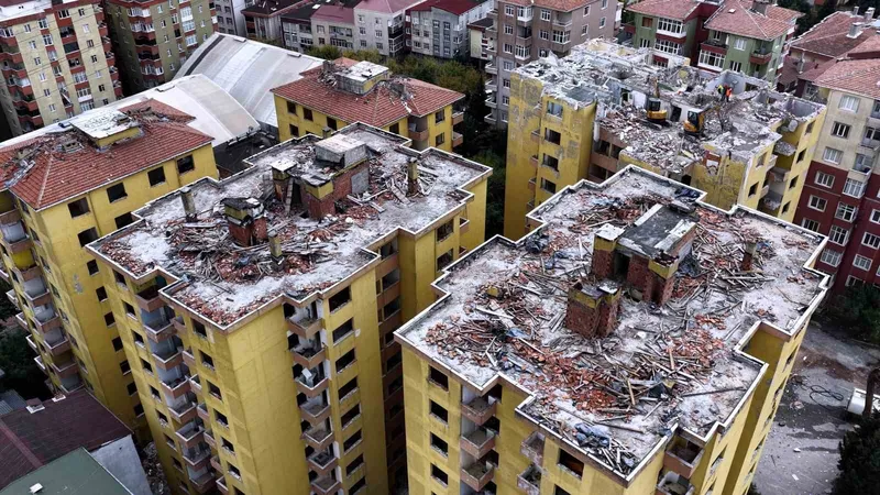 İstanbul Küçükçekmece'deki 11 katlı 8 bloktan oluşan Doğuş Sitesi, alan bazlı dönüşüm desteğiyle yeniden inşa edilecek. İlk etapta 5 blokta bulunan 162 bağımsız bölümün yıkımı tamamlandı. Emlak Konut'un üstlendiği proje 4 bin 752 metrekare alanda yürütülecek.
